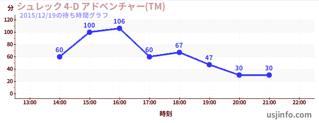 • シュレック 4-D アドベンチャー(TM)$B$N(B2015年12月19日の待ち時間