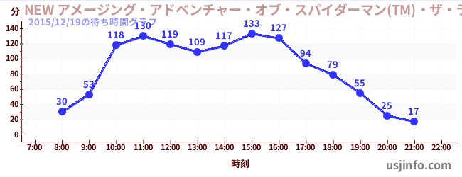 • NEW アメージング・アドベンチャー・オブ・スパイダーマン(TM)・ザ・ライド 4K3D$B$N(B2015年12月19日の待ち時間