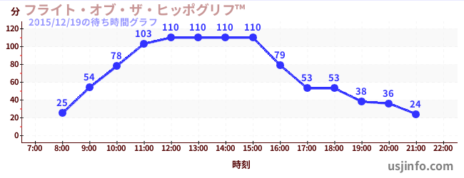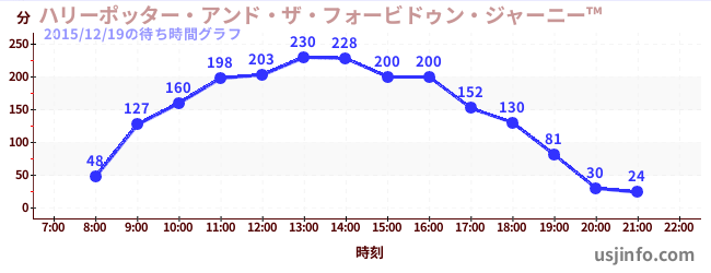 • ハリーポッター・アンド・ザ・フォービドゥン・ジャーニー™$B$N(B2015年12月19日の待ち時間