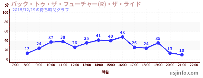 • バック・トゥ・ザ・フューチャー(R)・ザ・ライド$B$N(B2015年12月19日の待ち時間