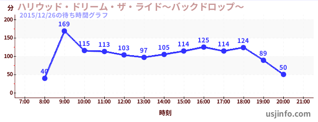 • ハリウッド・ドリーム・ザ・ライド〜バックドロップ〜$B$N(B2015年12月26日の待ち時間