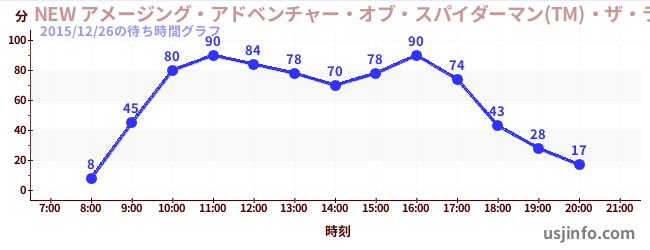 • NEW アメージング・アドベンチャー・オブ・スパイダーマン(TM)・ザ・ライド 4K3D$B$N(B2015年12月26日の待ち時間