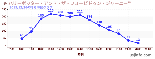 • ハリーポッター・アンド・ザ・フォービドゥン・ジャーニー™$B$N(B2015年12月26日の待ち時間