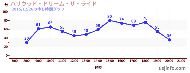 • ハリウッド・ドリーム・ザ・ライド$B$N(B2015年12月26日の待ち時間