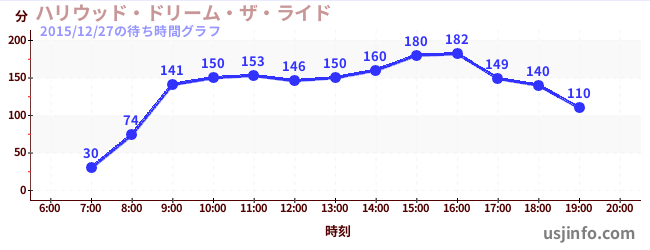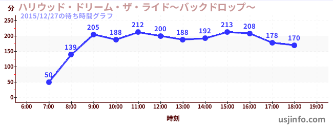 • ハリウッド・ドリーム・ザ・ライド〜バックドロップ〜$B$N(B2015年12月27日の待ち時間