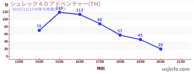 • シュレック 4-D アドベンチャー(TM)$B$N(B2015年12月27日の待ち時間
