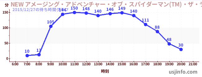 • NEW アメージング・アドベンチャー・オブ・スパイダーマン(TM)・ザ・ライド 4K3D$B$N(B2015年12月27日の待ち時間