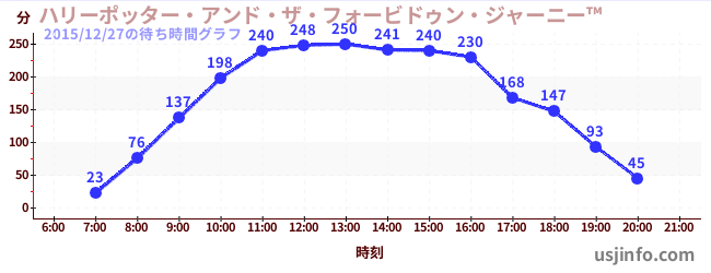 • ハリーポッター・アンド・ザ・フォービドゥン・ジャーニー™$B$N(B2015年12月27日の待ち時間
