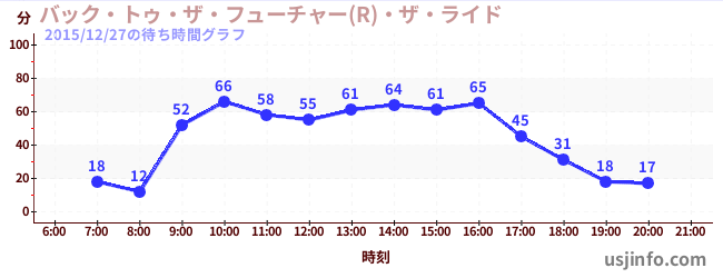 • バック・トゥ・ザ・フューチャー(R)・ザ・ライド$B$N(B2015年12月27日の待ち時間