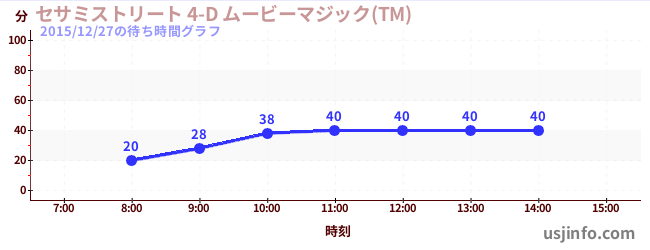 • セサミストリート 4-D ムービーマジック(TM)$B$N(B2015年12月27日の待ち時間