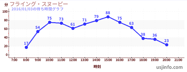 • フライング・スヌーピー$B$N(B2016年01月03日の待ち時間