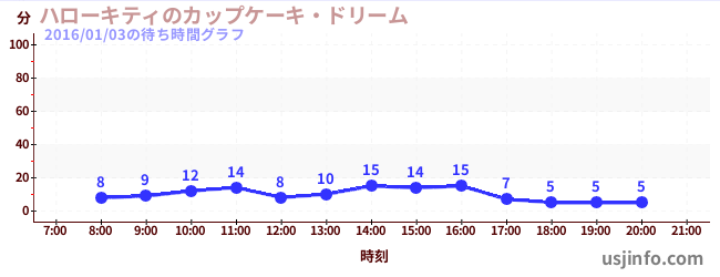 • ハローキティのカップケーキ・ドリーム$B$N(B2016年01月03日の待ち時間