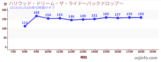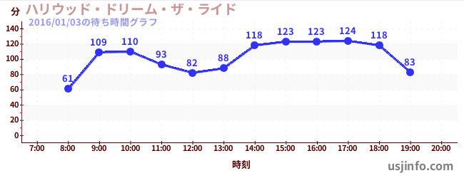 • ハリウッド・ドリーム・ザ・ライド〜バックドロップ〜$B$N(B2016年01月03日の待ち時間
