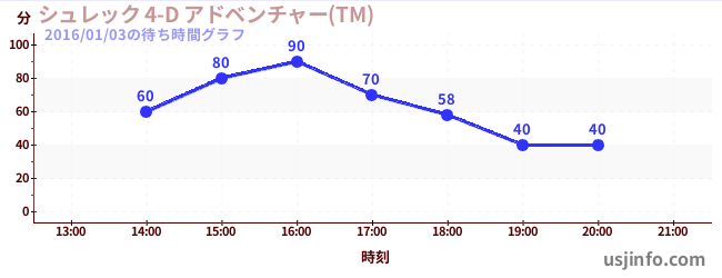 • シュレック 4-D アドベンチャー(TM)$B$N(B2016年01月03日の待ち時間