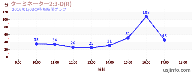 • ターミネーター2:3-D(R)$B$N(B2016年01月03日の待ち時間