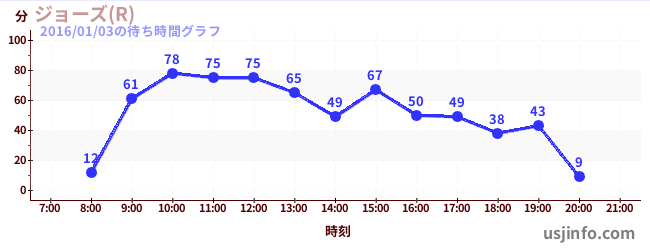 • ジョーズ(R)$B$N(B2016年01月03日の待ち時間