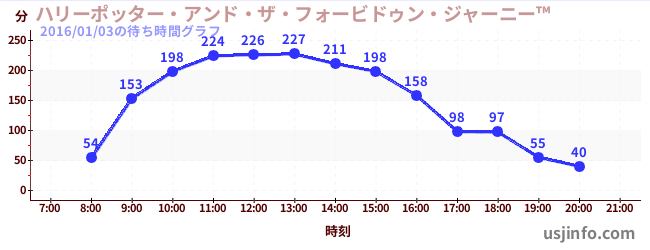 • ハリーポッター・アンド・ザ・フォービドゥン・ジャーニー™$B$N(B2016年01月03日の待ち時間