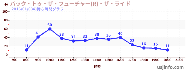 • バック・トゥ・ザ・フューチャー(R)・ザ・ライド$B$N(B2016年01月03日の待ち時間