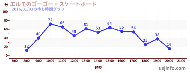 • エルモのゴーゴー・スケートボード$B$N(B2016年01月03日の待ち時間
