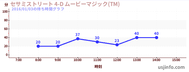 • セサミストリート 4-D ムービーマジック(TM)$B$N(B2016年01月03日の待ち時間