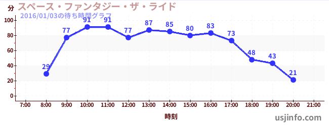 • スペース・ファンタジー・ザ・ライド$B$N(B2016年01月03日の待ち時間