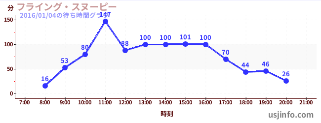 • フライング・スヌーピー$B$N(B2016年01月04日の待ち時間