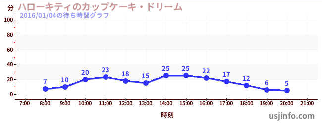 • ハローキティのカップケーキ・ドリーム$B$N(B2016年01月04日の待ち時間