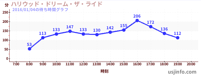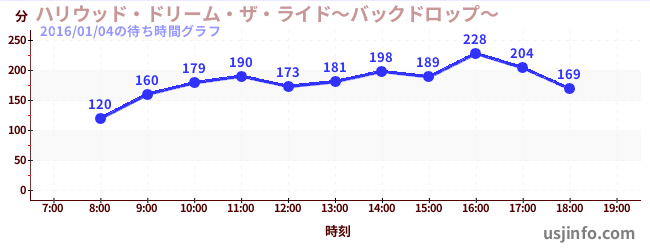 • ハリウッド・ドリーム・ザ・ライド〜バックドロップ〜$B$N(B2016年01月04日の待ち時間
