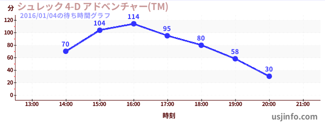 • シュレック 4-D アドベンチャー(TM)$B$N(B2016年01月04日の待ち時間