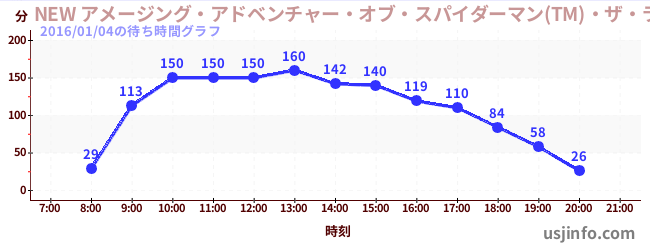 • NEW アメージング・アドベンチャー・オブ・スパイダーマン(TM)・ザ・ライド 4K3D$B$N(B2016年01月04日の待ち時間