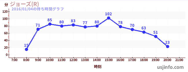 • ジョーズ(R)$B$N(B2016年01月04日の待ち時間