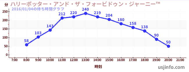 • ハリーポッター・アンド・ザ・フォービドゥン・ジャーニー™$B$N(B2016年01月04日の待ち時間