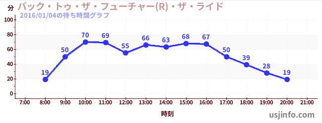 • バック・トゥ・ザ・フューチャー(R)・ザ・ライド$B$N(B2016年01月04日の待ち時間