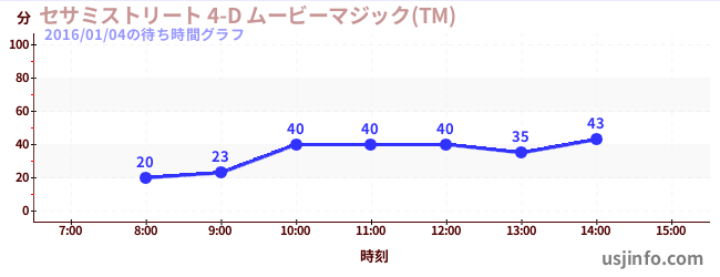 • セサミストリート 4-D ムービーマジック(TM)$B$N(B2016年01月04日の待ち時間