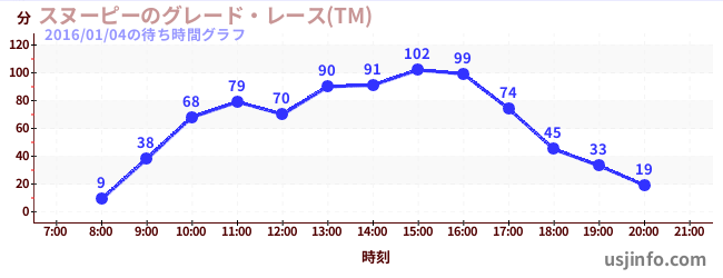 • スヌーピーのグレード・レース(TM)$B$N(B2016年01月04日の待ち時間