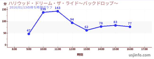 • ハリウッド・ドリーム・ザ・ライド〜バックドロップ〜$B$N(B2016年01月13日の待ち時間