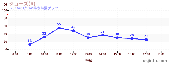 • ジョーズ(R)$B$N(B2016年01月13日の待ち時間