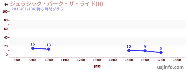 • ジュラシック・パーク・ザ・ライド(R)$B$N(B2016年01月13日の待ち時間