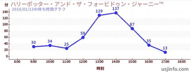 • ハリーポッター・アンド・ザ・フォービドゥン・ジャーニー™$B$N(B2016年01月13日の待ち時間
