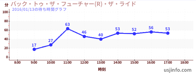 • バック・トゥ・ザ・フューチャー(R)・ザ・ライド$B$N(B2016年01月13日の待ち時間