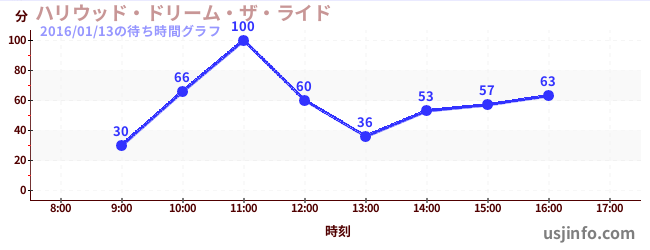 • ハリウッド・ドリーム・ザ・ライド$B$N(B2016年01月13日の待ち時間