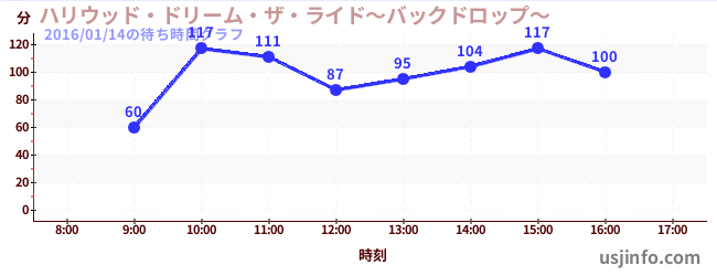 • ハリウッド・ドリーム・ザ・ライド〜バックドロップ〜$B$N(B2016年01月14日の待ち時間