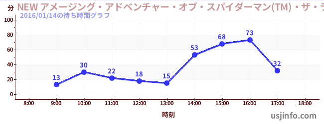• NEW アメージング・アドベンチャー・オブ・スパイダーマン(TM)・ザ・ライド 4K3D$B$N(B2016年01月14日の待ち時間