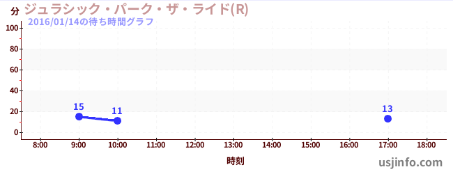 • ジュラシック・パーク・ザ・ライド(R)$B$N(B2016年01月14日の待ち時間