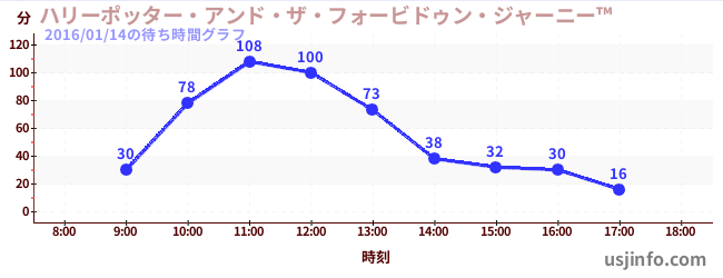• ハリーポッター・アンド・ザ・フォービドゥン・ジャーニー™$B$N(B2016年01月14日の待ち時間