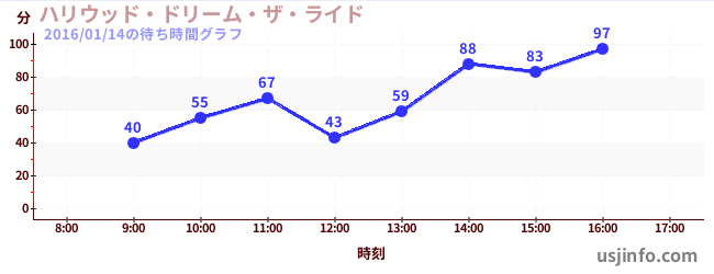 • ハリウッド・ドリーム・ザ・ライド$B$N(B2016年01月14日の待ち時間