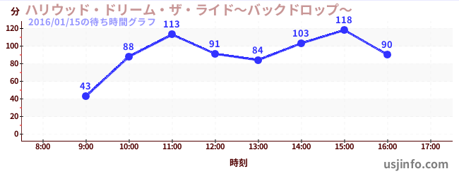 • ハリウッド・ドリーム・ザ・ライド〜バックドロップ〜$B$N(B2016年01月15日の待ち時間