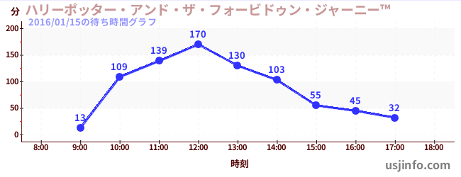 • ハリーポッター・アンド・ザ・フォービドゥン・ジャーニー™$B$N(B2016年01月15日の待ち時間