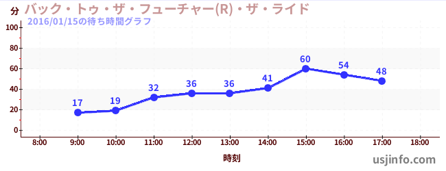 • バック・トゥ・ザ・フューチャー(R)・ザ・ライド$B$N(B2016年01月15日の待ち時間