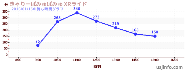 • きゃりーぱみゅぱみゅ XRライド$B$N(B2016年01月15日の待ち時間